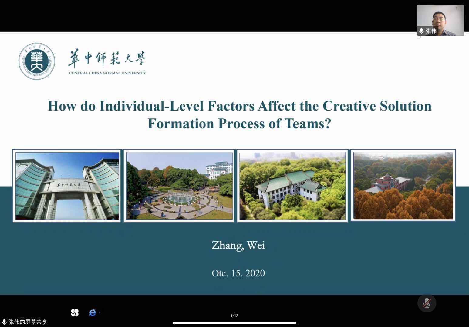 此外,张伟教授补充分享了文献《How do Individual-Level Factors Affect the Creative Solution Formation Process of Teams?》,并从审稿人角度对论文写作技巧、写作重点等进行了说明。