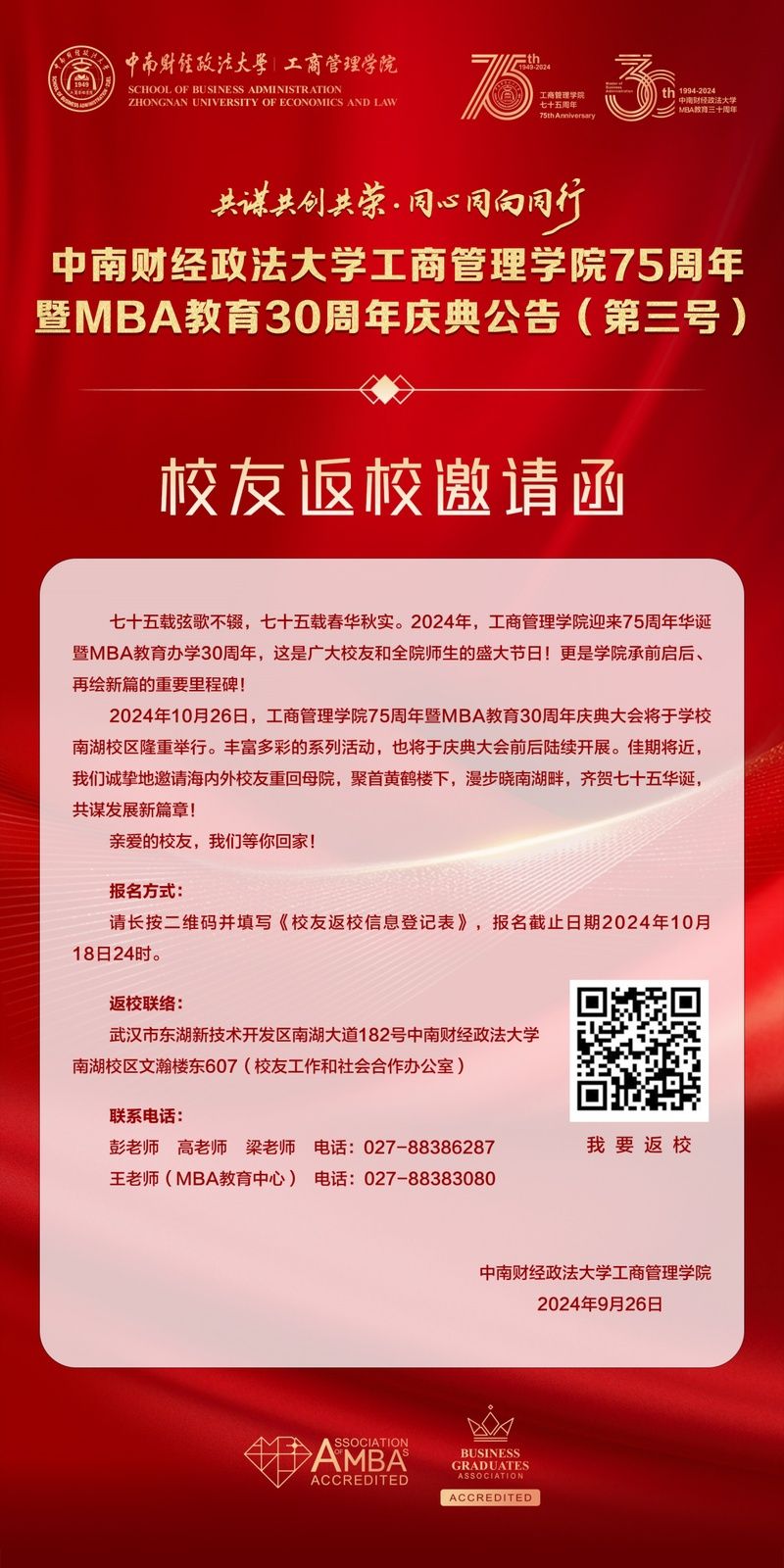 共谋共创共荣 · 同心同向同行——kaiyun官网中国75周年暨MBA教育30周年庆典公告(第三号)——校友返校邀请函