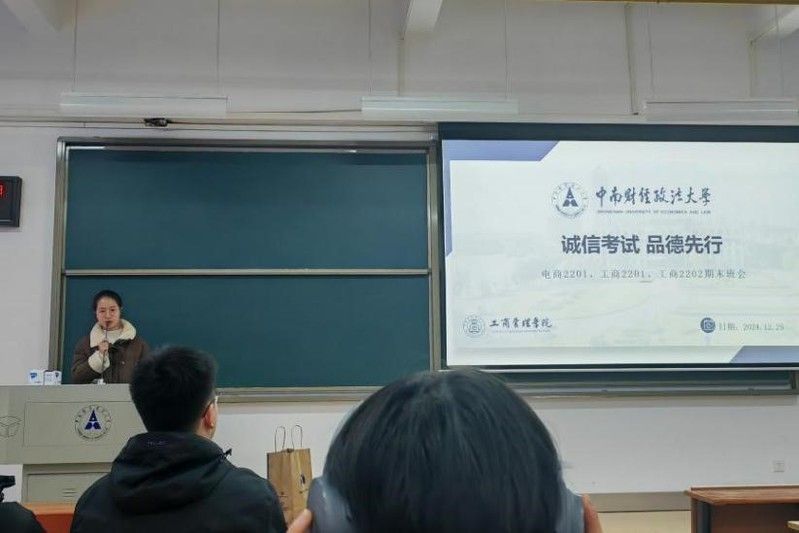 (通讯员:张诗彤)为弘扬诚信精神,激发大家对未来职业生涯的积极准备,进一步增强了班级团结向上、积极进取的氛围,2024年12月25日星期三下午,工商2201、工商2202和电商2201在南附201开展“诚信考试,品德先行”主题班会,由傅婉清同学主持。