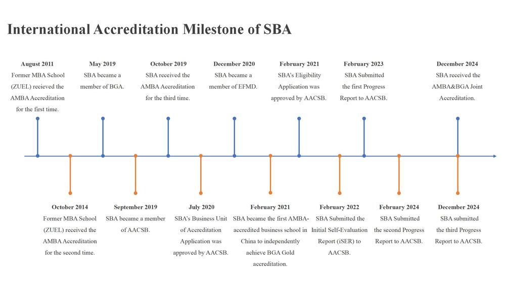In September 2019, the SBA submitted the application to AACSB for altering AACSB membership from the former MBA School to the SBA. In October 2019, the School set up the International Accreditation Office and equipped it with staff, marking the official restart of AACSB international accreditation. In July 2020, the SBA passed the Business Unit of Accreditation Application and was allowed to apply for AACSB accreditation as a single business academic unit. In February 2021, the SBA’s Eligibility Application (EA) was approved by the accreditation committee during AACSB’s first Initial Accreditation Committee (IAC) meeting, marking a milestone step for the SBA to receive AACSB accreditation. Through a year of efforts, the SBA finished its initial self-evaluation report (iSER) and submitted it to IAC for review on February 15th, 2022. In June 2022, the SBA received official feedback from IAC. Continuing this trajectory, the SBAsubmitted the first, second, and third Progress Reports to AACSB in February 2023, February 2024, and December 2024, respectively, each submission reflecting ongoing commitment to meeting AACSB standards and continuous improvement.