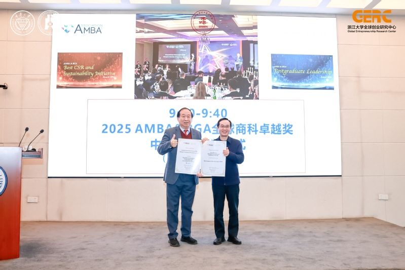 SBA was awarded the 2025 Best CSR and Sustainability Initiative Award 2025, which is the only Gold Award granted to an institution in mainland China this year. Additionally, SBA received a BGA Student of the Year Award 2025. Professor Wang Zhongming, on behalf of the AMBA&BGA President, presented the awards to the representatives of the winning institutions and extended his congratulations to them in person.