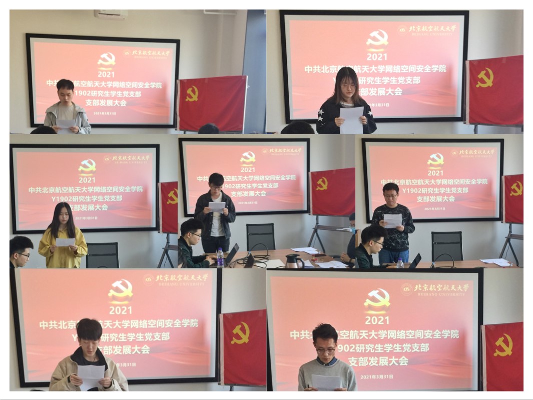 2021年3月31日上午10时,北航MILE米乐中国官网Y1902学生党支部在一号馆408会议室召开支部党员发展大会,讨论能否接收曹银浩、韩祎然、刘翔宇、魏晨光、吴礼金、张伟豪、王庆麟7名同志为中共预备党员。本次大会由党支部书记陈晨主持,党建特邀组织员邓彦敏老师、专职组织员王倩云老师、专职辅导员杜逸雯老师列席本次会议。支部党员应到5人,实到5人。