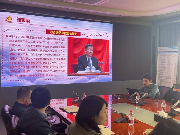 本科生第一党支部支委曹硕宸同志就“凝聚青年共识汇聚青春力量——学习贯彻习近平总书记关于教育、科技、人才工作的重要论述”介绍了支部对党员青年在教育、科技和人才三个层面的理论思想培养和全方位指导建设。