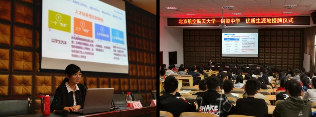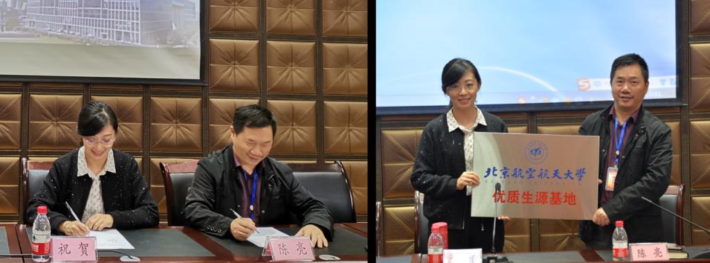 2019年4月15-16日,北航重庆招生组赴渝开展招生宣传活动。MILE米乐中国官网党委副书记祝贺、MILE米乐中国官网重庆招生组副组长李圆圆、MILE米乐中国官网关振宇一行走进重庆市第十八中学校和铜梁中学,签署合作协议,建立“MILE米乐中国官网优质生源基地”,并组织“教授进中学”系列报告等招生宣传活动。