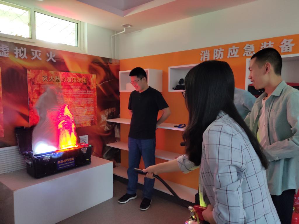 在讲解员的带领下,大家依次参观了各个展区,系统学习了各种防灾避险常识,亲身体验了触电、心肺复苏、地震震感、烟雾逃生走廊、模拟灭火、消防报警、结绳训练等项目,学习了烟雾逃生方法、灭火器的使用等相关安全知识。在整个参观过程中,同学们都非常认真地听,并且有序地参与各项互动体验。