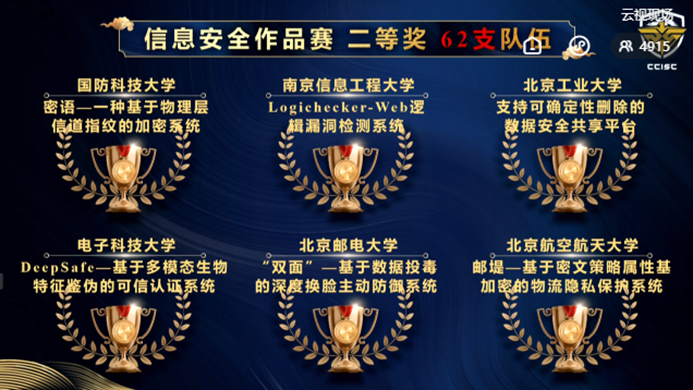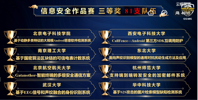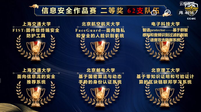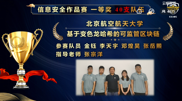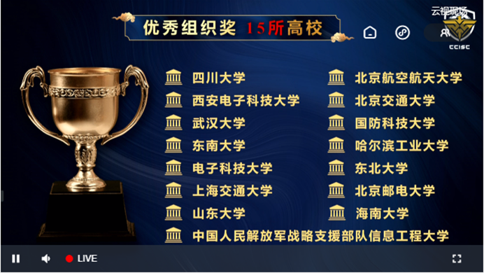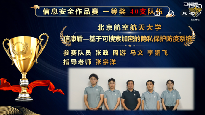 2021年8月29日至30日,在教育部高等学校网络空间安全专业教学指导委员会主办的2021年度第十四届全国大学生信息安全竞赛-作品赛中,MILE米乐中国官网8支参赛队获得5个一等奖2个二等奖1个三等奖的优异成绩,获一等奖数量和获奖总数在全国高校均名列第一,获得本次大赛 “优秀组织奖”,刘建伟、张宗洋、洪晟、高莹获得“优秀指导教师”,展现了MILE米乐中国官网“厚学识、重实战、强能力、求创新”人才培养理念,展示了网安学子在信息安全领域的竞赛能力和科研潜力。