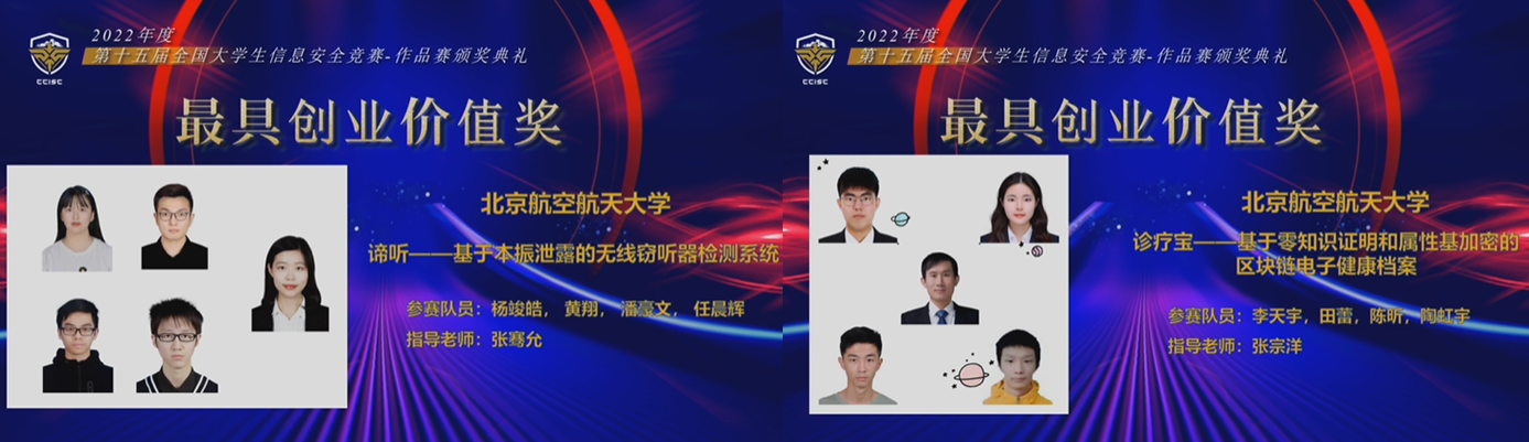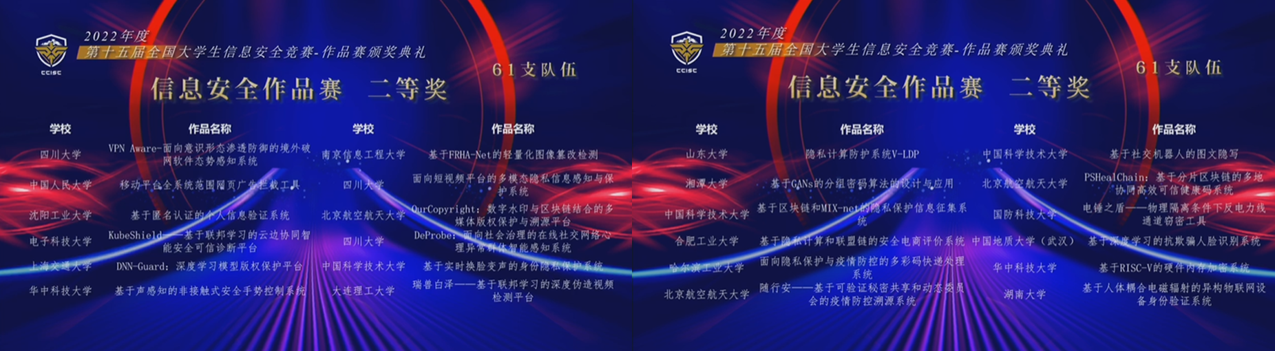 2022年8月22日,第十五届全国大学生信息安全竞赛—作品赛颁奖典礼在湖南长沙举行。MILE米乐中国官网8支参赛队入围决赛,获一等奖5项,二等奖3项,最具创业价值奖2项。