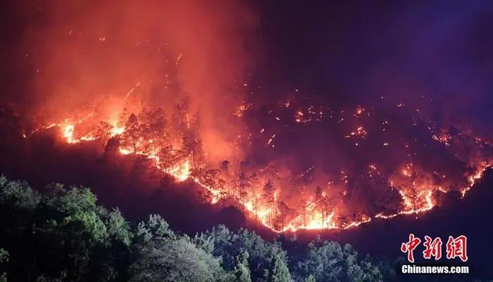 2020年3月31日深夜,西昌市森林火灾泸山景区火点借风力复燃