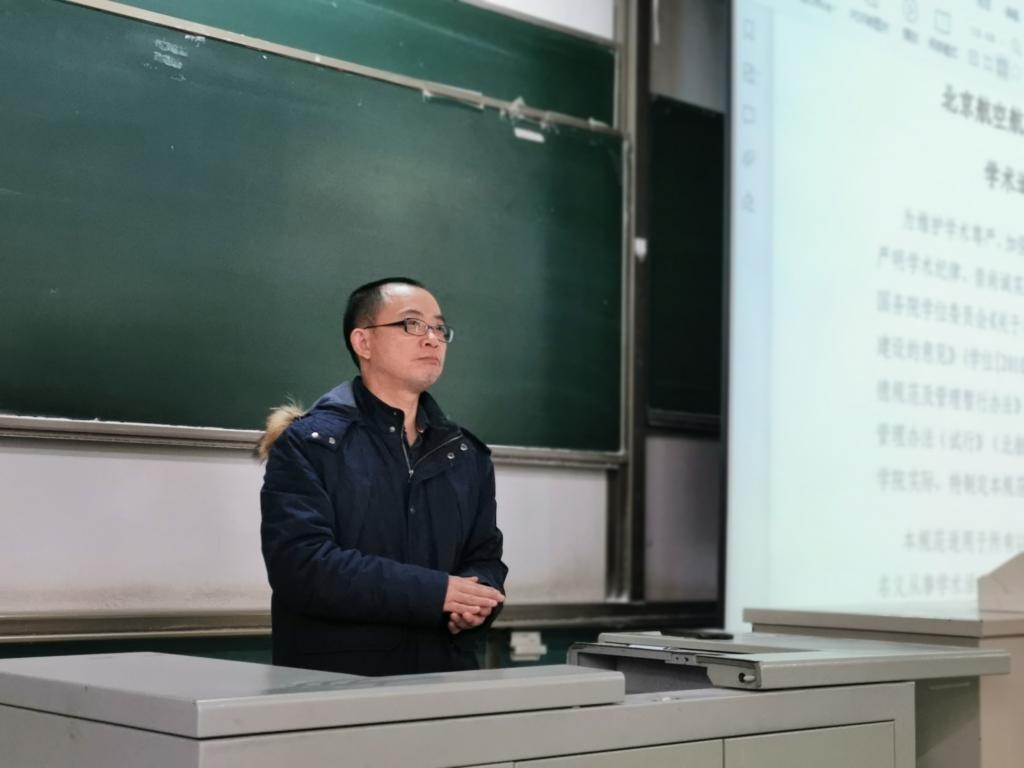 会议第三项,伍前红副院长详细的解读了《北航MILE米乐中国官网研究生学术道德规范管理办法》,表示学院将持续建立健全学风建设制度办法,为潜心做学问的科研工作者保驾护航,严厉打击学术不端失范行为,营造公平公正、风清气正的学术氛围。
