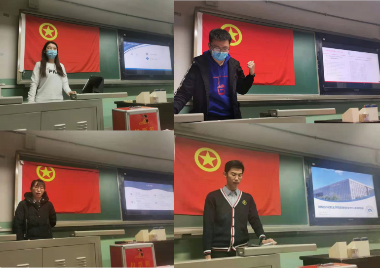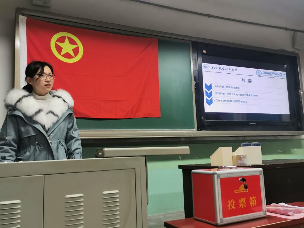 伴随着《光荣啊,中国共青团》的歌声,会议正式开始。首先,管天玉导学《党的十九届五中全会精神》的内容,并提醒同学们集合自身实际,研读十九届五中全会精神,把握历史方位,站稳政治立场,学以致用,用理论的力量来武装头脑、指导实践。