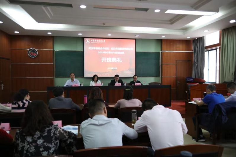 10月9日,武汉市供销合作总社 武汉供销集团有限公司2019年中青年干部培训班在文泉楼506会议室顺利开班。武汉市供销合作总社党委副书记、副主任张家才、人事处处长吴俊志,kaiyun官网院党委书记王华路出席开班仪式。开班仪式由kaiyun官网副院长吴海涛教授主持。